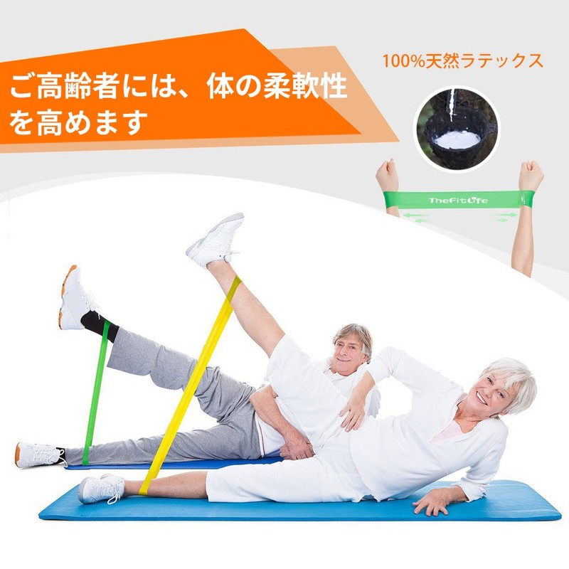 - 【5から59kgまで負荷が変えられます】:5種類の負荷のトレーニングゴムバンドがあり組み合わせて自分にあった負荷を調節できます。負荷のコードが明記されているので一目で区別する事が出来ます。幅が広く負荷をかけた時の安定感が抜群です。天然ラテックスは自在に伸縮し変化するので、筋トレ、体幹トレ、ストレッチ、美尻、太もも痩せなど幅広く活用できます。