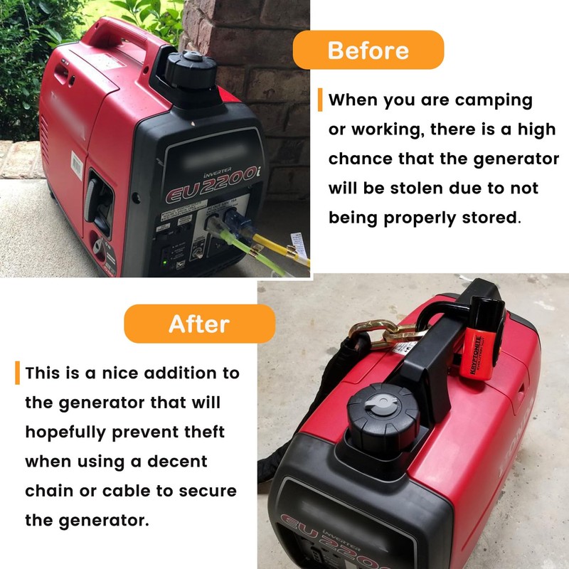 - THE USING OF BRACKET: Generator Theft Deterrent Bracket adds a metal covering over the plastic handle, which allows you to safely run a chain or cable through the iron handle of the generator and lock it to something sturdy.