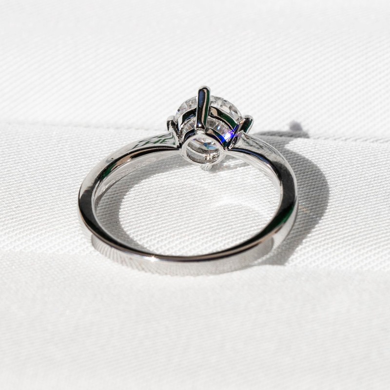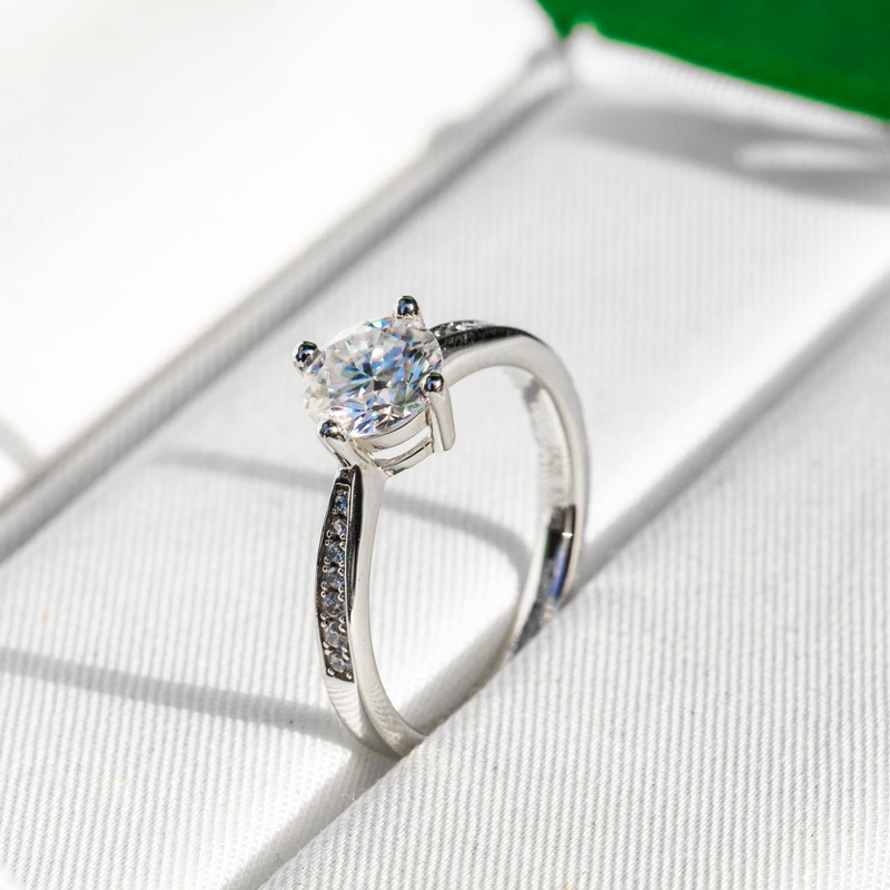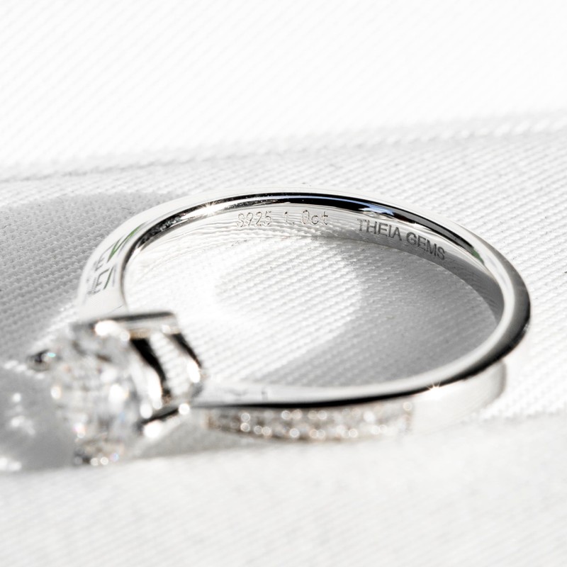 THEIA GEMS Mona Solitaire Women's Ring with Brand Engraving in S925 Sterling Silver with 4-Prong Setting and 1.0 Carat Moissanite Brilliant Round and 16 Set Stones (0.1 Carat), Paper, Created