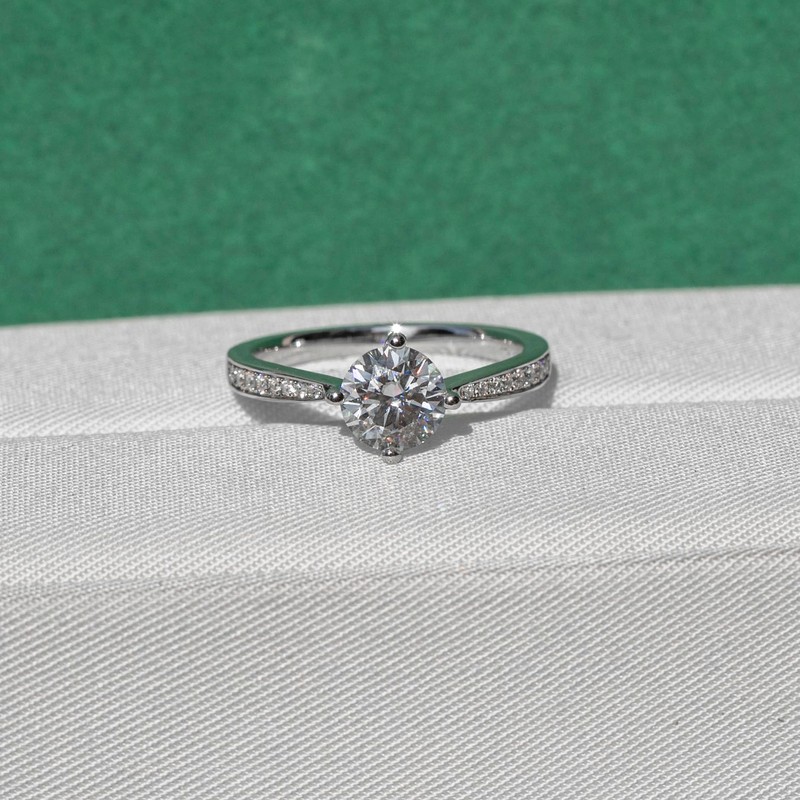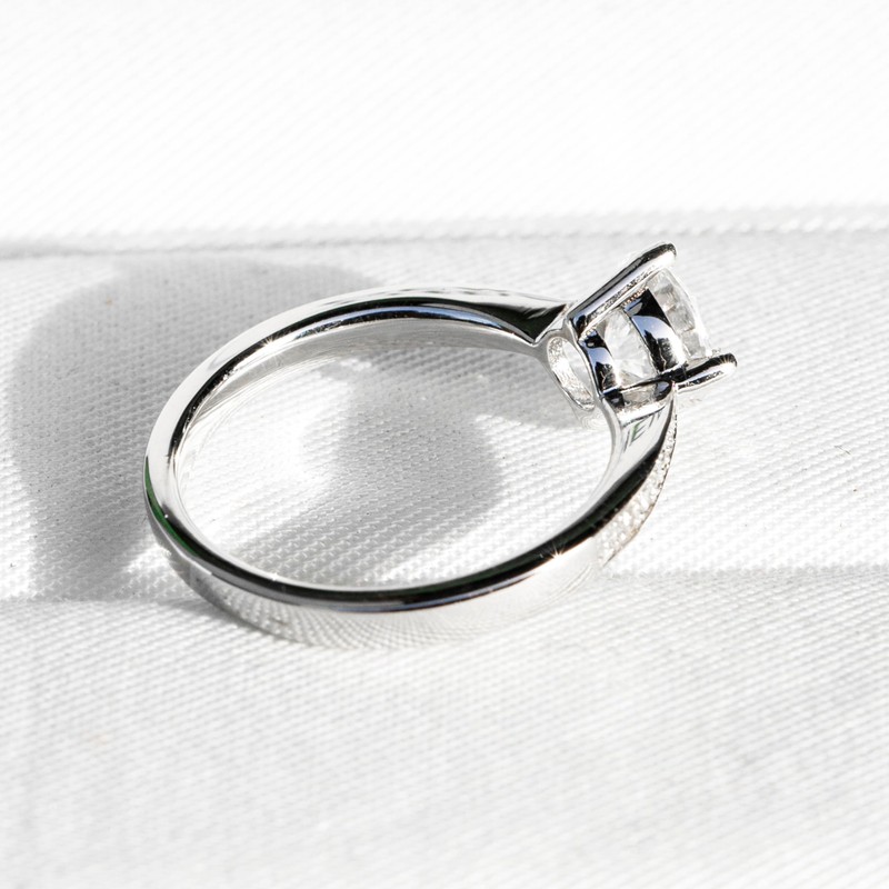 - The main stone is a synthetic moissanite in the colour white. It is completely colourless and corresponds to the colour D for diamonds (colourless). Only experts can tell the difference to the diamond.