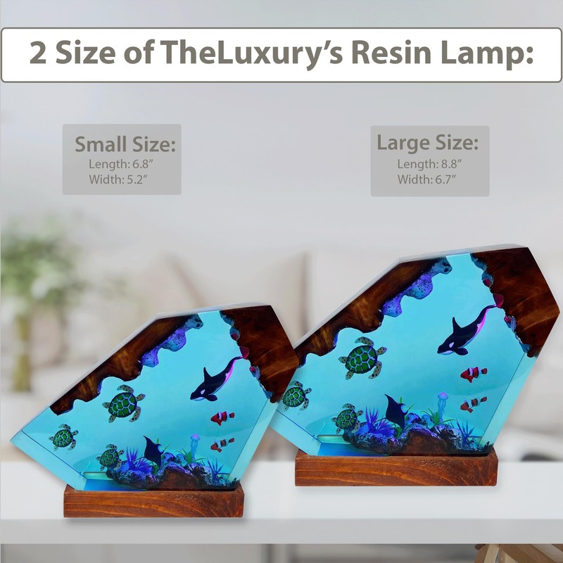 - ๐๐ซ๐ค๐จ๐๐ฆ๐๐ง๐ ๐๐ฅ๐๐๐ง๐ฆ๐ ๐๐ก๐ฆ๐๐๐ฃ: Our decorative whale diver lamp is skillfully made from top-notch epoxy resin. Ocean resin lamp's transparent features create a mesmerizing blend of depth and beauty. The built-in LED shark and jellyfish resin lamp, snug within the lamp base, gracefully illuminates turtle and sharks, casting a charming vibe across your room.