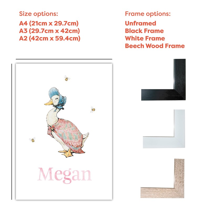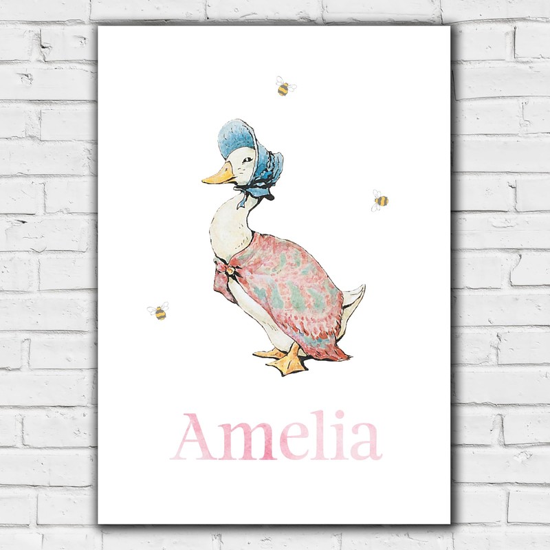 Themed Peter Rabbit Print - Jemima Puddle-Duck Personalised Name Nursery Wall Art (A4-21cm x 29.7cm)
