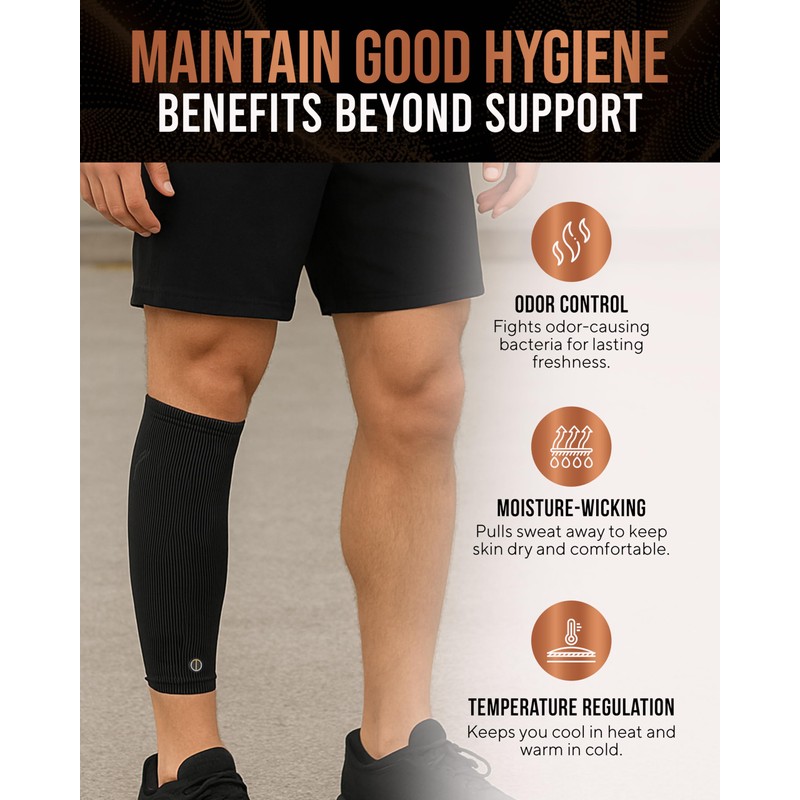 - HIGHEST COPPER CONTENT: Crafted with 62% copper-infused nylon, this womens and mens calf compression sleeve delivers true copper benefits, unlike other alternatives that use low-grade copper oxide coatings. Every thread of our copper compression leg sleeves is infused with real copper ions for enhanced conductivity, odor control, and lasting freshness. Stay supported and comfortable with consistent compression in every wear.