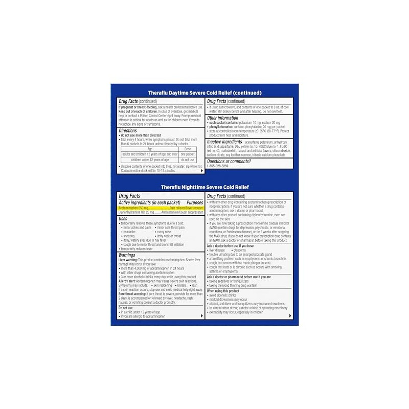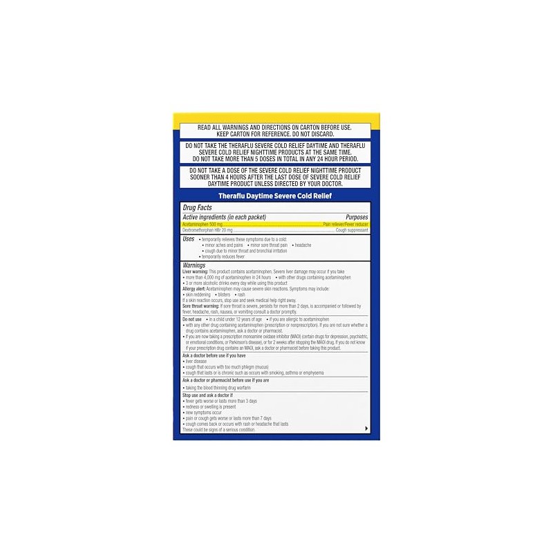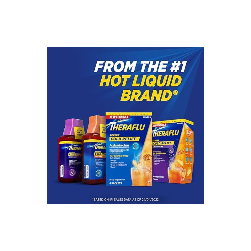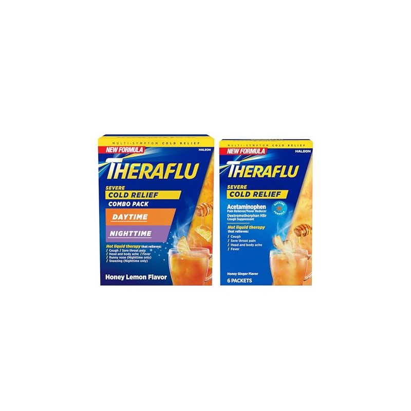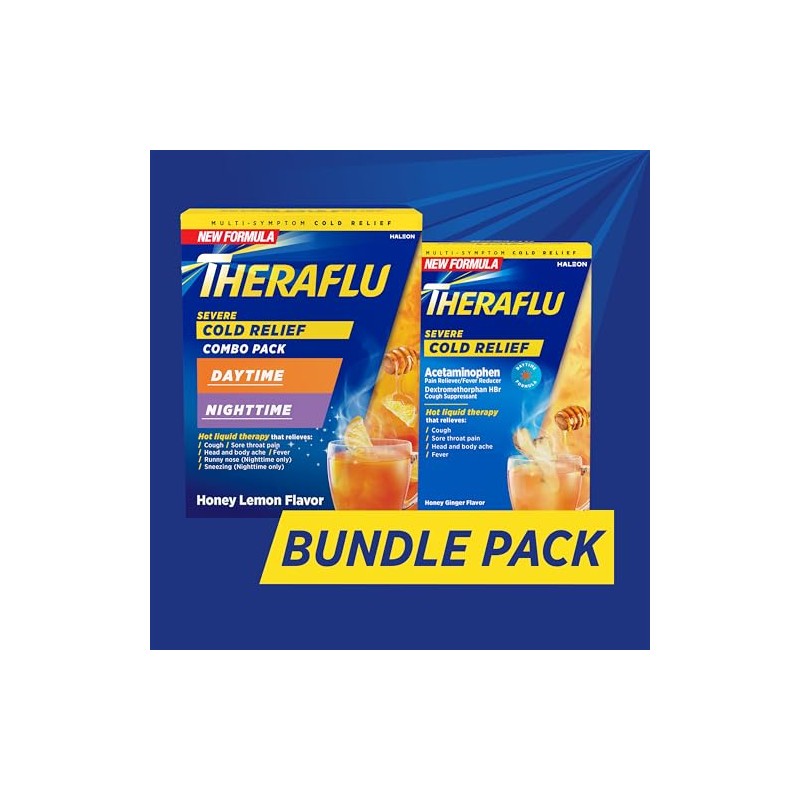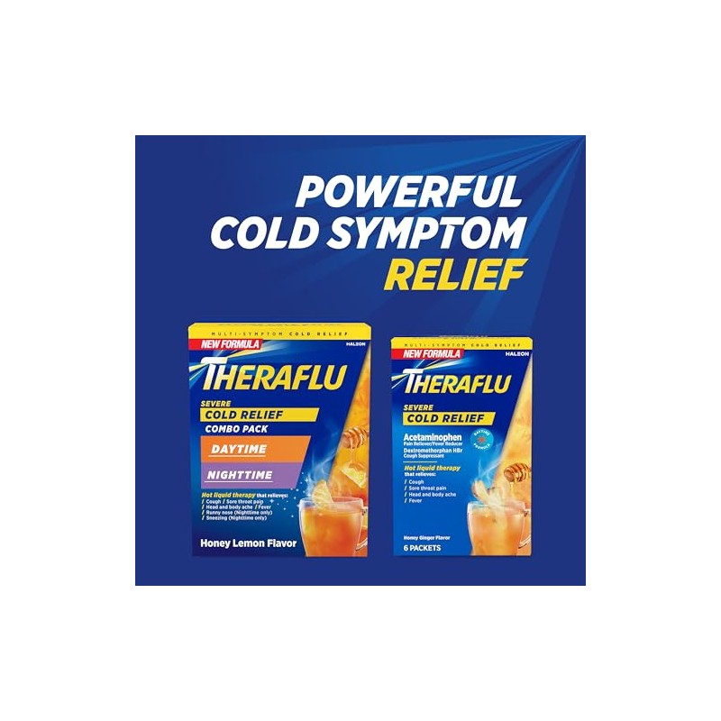 - COMBO SEVERE COLD RELIEF HOT LIQUID POWDER: Theraflu 12ct Daytime/Nighttime Honey Lemon Flavor + 6ct Honey Ginger Flavor Daytime