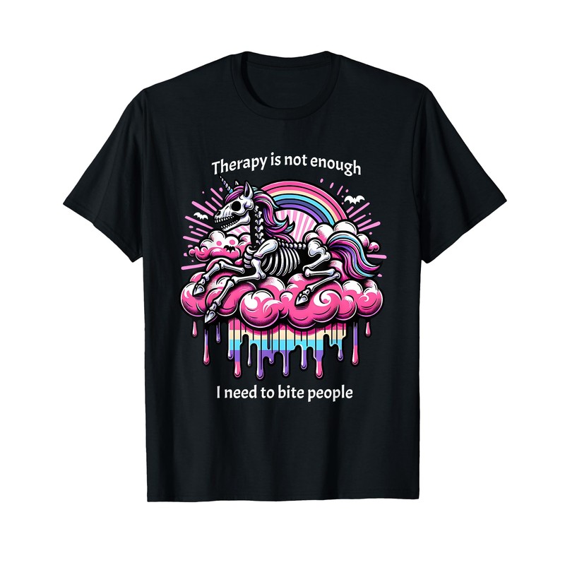 • Therapy Is Not Enough I Need To Bite People, Funny Bite People Spooky Skeleton Unicorn, Funny Meme