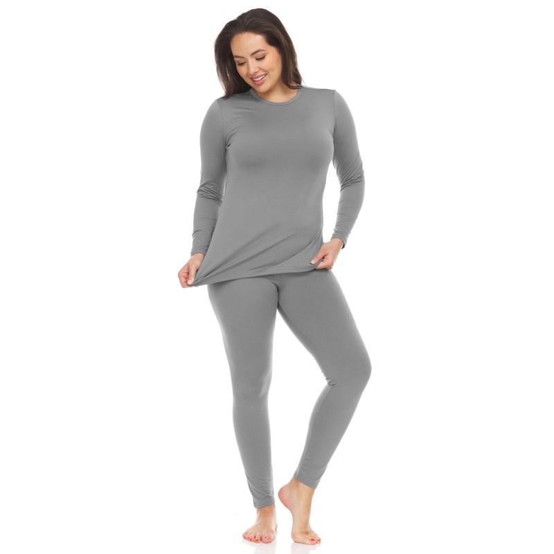 Thermajane Long Johns Thermal Underwear for Women Fleece Lined Base Layer Pajama Set Cold Weather (2X-Small, Grey)