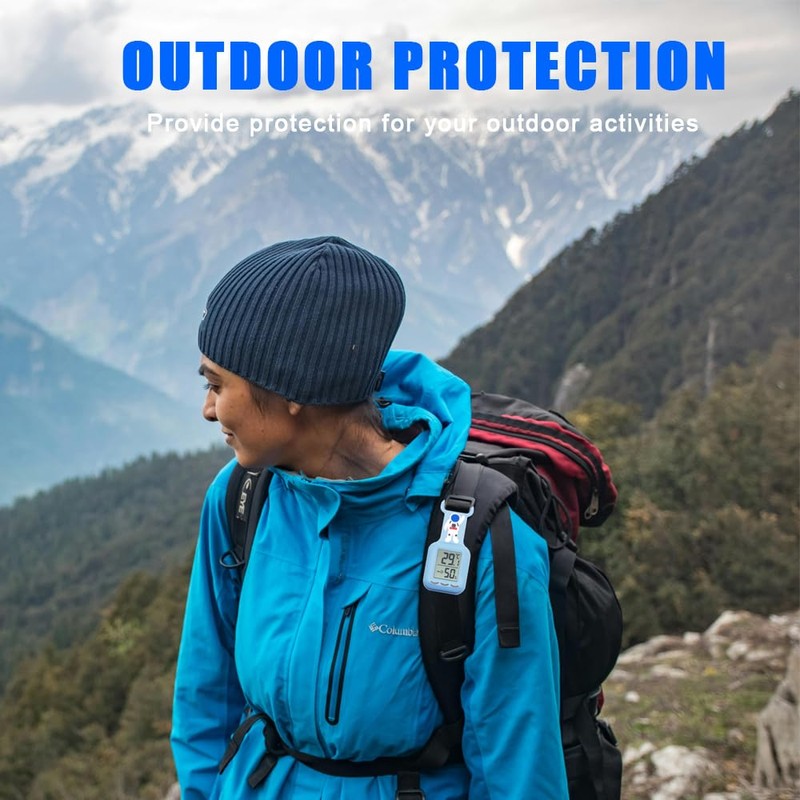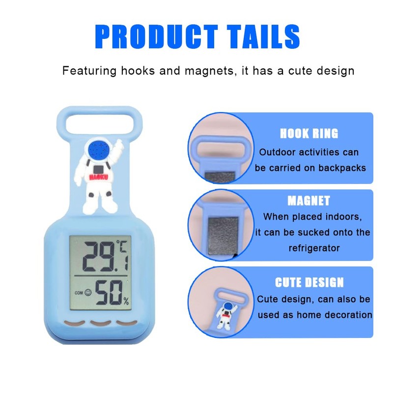 Thermo-Hygrometer, Portable Thermometer, Hygrometer, Heatstroke Prevention, Heat Stroke Monitor, Flu Alarm Function, Temperature and Humidity, Digital, Small, Alert, For Babies, Work Sites, Baby