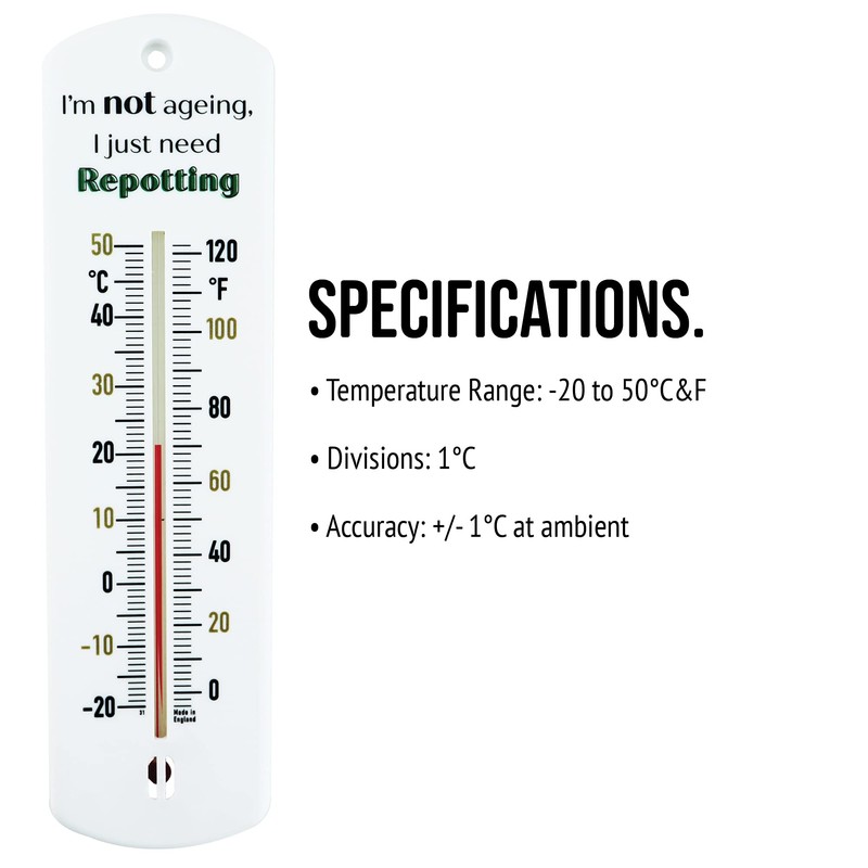 - GREAT AS A GARDENING GIFT - Complete with "I'm not ageing, i just need repotting" printed quote makes this thermometer an ideal gift for the gardener.