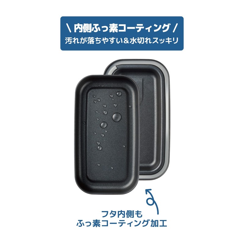 - Fluorine coating on the inside makes it easy to remove dirt and drains cleanly. Aluminum Lunch Box