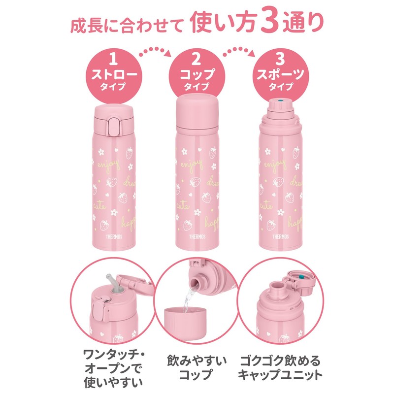Thermos FJW-550TR LP Vacuum Insulated 3-Way Bottle, 0.2 gal (0.56 L/ 0.56 L), Light Pink, For Cold Retention