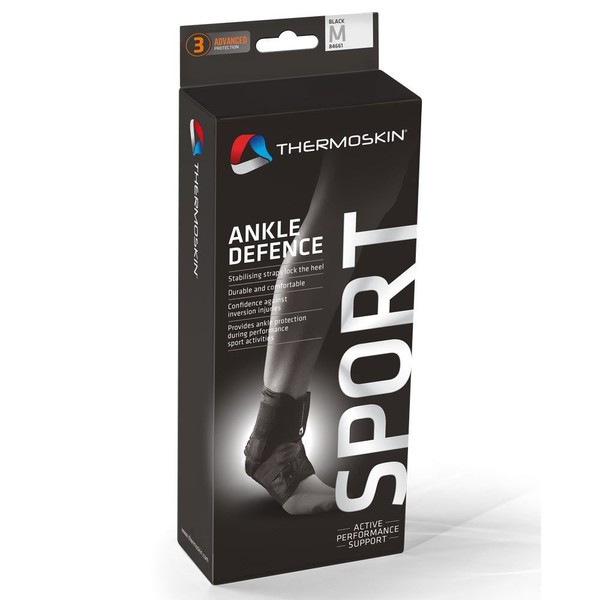 Thermoskin Ankle Defence assists in the treatment of acute ankle injuries such as medial and lateral ligament damage. The rigid support features stabilising straps which simulate figure 8 strapping of a professional athletic trainer and acts to position the ankle in the beneficial 90 degree angle. Use of the Ankle Defence brace may help reduce the severity and frequency of ankle injuries. Low profile design means the brace fits comfortably in your shoe.