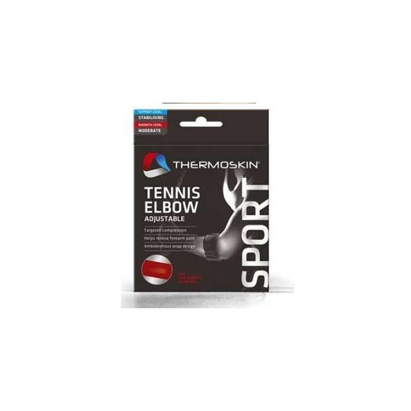 The Thermoskin Sport Tennis Elbow provides compression, support and warmth for weak or injured elbows during periods of increased activity. Tennis Elbow is a painful inflammation of the tendon on the lateral aspect of the elbow caused by the pull of the muscles, which extends to the wrist and fingers. Tennis Elbow effects 1-3% of people aged between 30 and 50, more commonly in men than women.