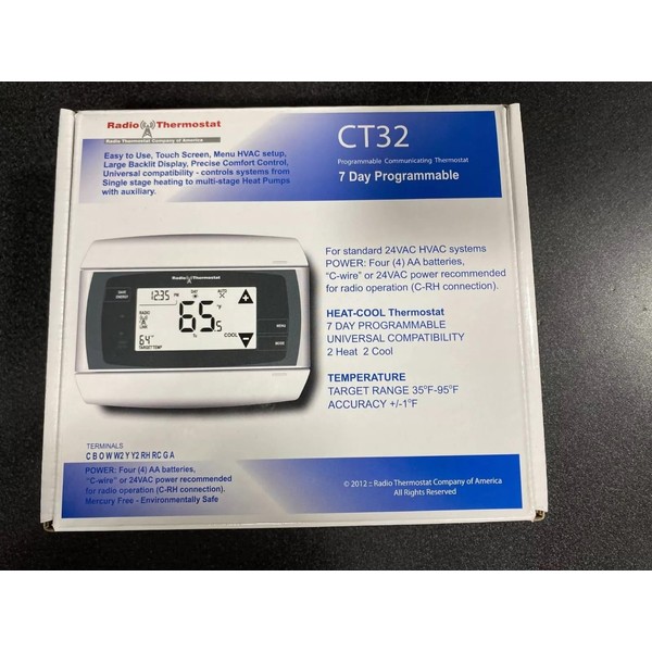 - Includes 300 series z-wave module Can control up to 2 stages of heat and 2 stages of cool. The Ct32 allows you to program up to 4 independent periods per day The Ct32 is designed to run on batteries, making it a great replacement with no need for that pesky c wire connection you may have seen with other models Works with nearly any hvac system - including traditional furnaces and heat pump Sleek 7-day programmable thermostat with touchscreen controls Includes 300 series Z-Wave module. Touch Screen Display. Can control up to 2 stages of heat and 2 stages of cool. The CT32 allows you to program up to 4 independent periods per day