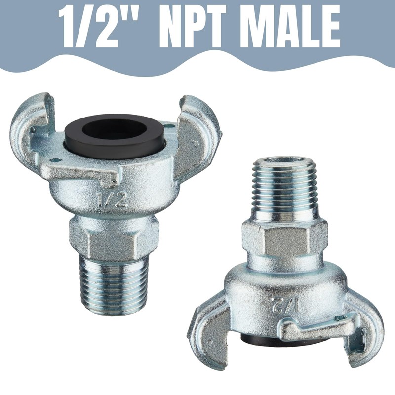Therwen 4 Sets 1/2 inch Chicago Air Fittings NPT Iron Air Hose Fitting 2 Lug Universal Coupling for Female and Male End(Male End)