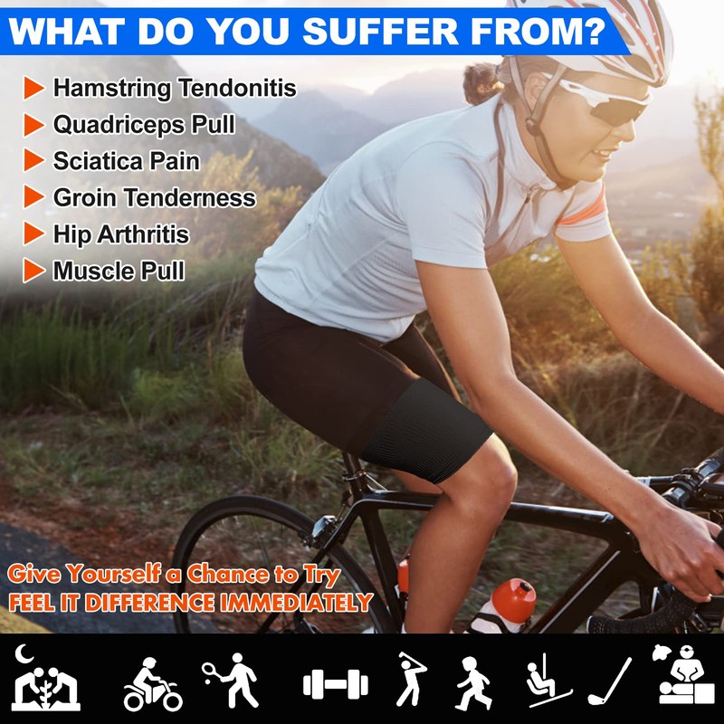- ✅ 🔥【Built For Performance & Comfort】- KEKING thigh support sleeve allows athletes to enjoy their loved sport in comfort. No matter if you're running, cycling, playing Basketball, doing work-out, or recovering, the sleeve will give you the support you need without restricting your movement. Easy to put on makes it stress free thigh wrap to wear every day, at work, home, let you keep up with the typical demands of daily life, exercise, and work. It seriously doesn't get much better than that!