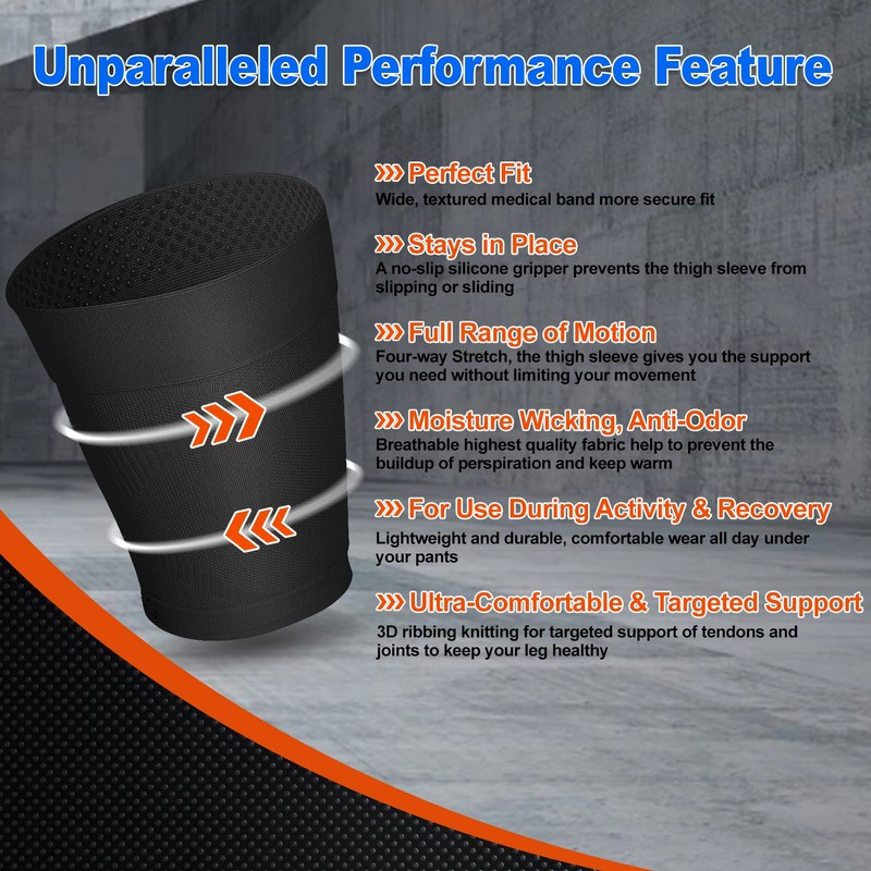 ----Four-way Stretch, the thigh sleeve gives you the support you need without restricting or limiting your movement.