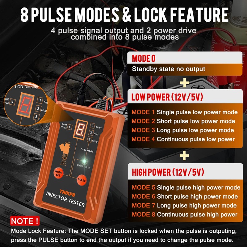 THIKPO Universal Fuel Injector Tester and Cleaner Tool Kit, DIY Cleaning Tool Kit, 8 Pulse Modes, 4 Wire Dual Channel for 2 Fuel Injectors, 8 Size Cleaning Adapters, 12V/5V Output Power