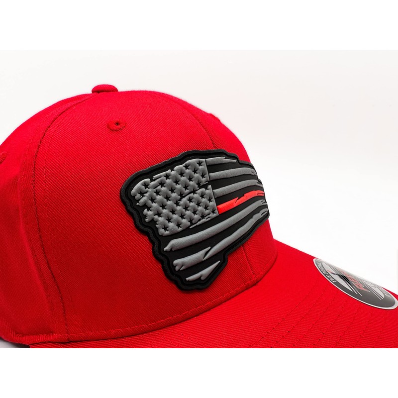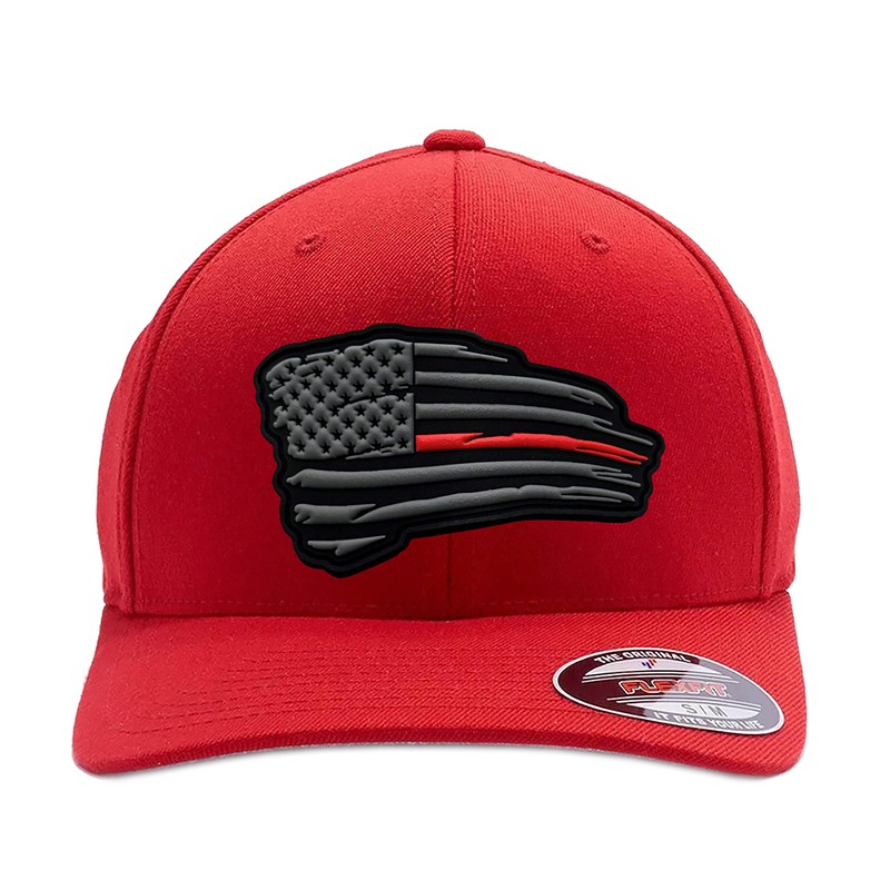 Thin Red Line American Waving Flag 3D PVC Soft Rubber Patch Flex Fitted Hat (S/M, Red)