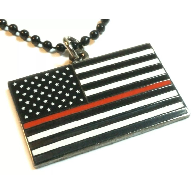 Thin Red Line Fallen Fire Dept Fireman Firefighter Pendant Necklace Ball Chain