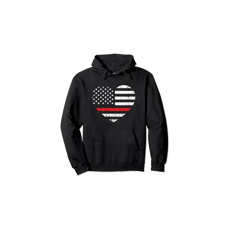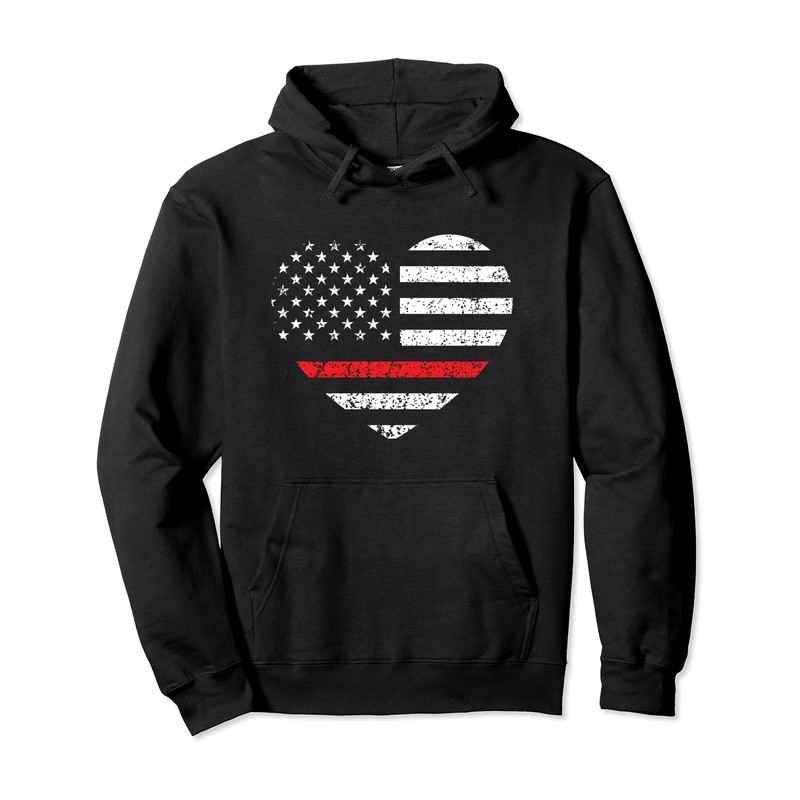 - Support Firefighters and Firemen with this Thin Red LIne, American Flag, Vintage Distressed, Heart, Pullover Hoodie