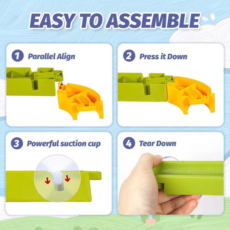 - Perfect Gift-This marble runs track toys for bath time is able to develop babies' hands-on skills, imagination, creativity, hand-eye coordination ability and improve their color perception. It is a perfect gift/prize for toddlers.