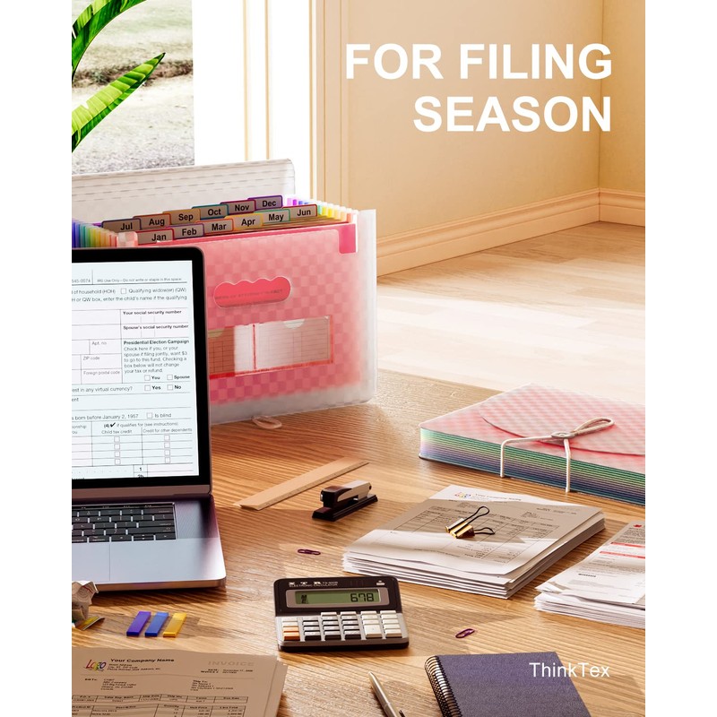 - MONATSRECHNUNGEN ORGANISATOR - ThinkTex Tragbarer Akkordeonordner, oben und unten erweiterbar, 12 Fächer und mehrfarbige Register, für Brief-/A4-Format