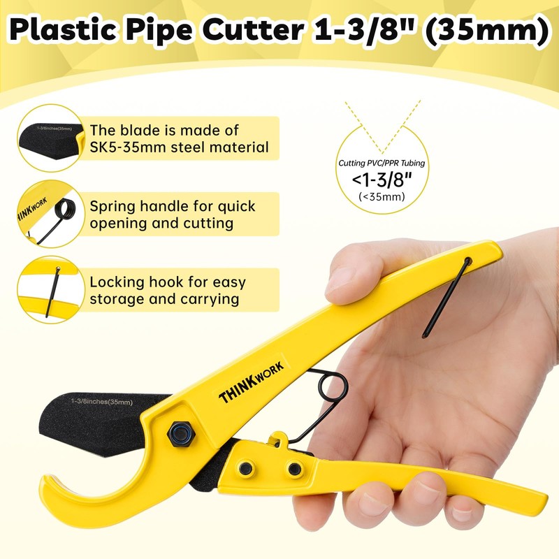 - 【Plastic Pipe Cutter】Our PVC pipe cutter has a cutting range of up to 1-3/8” (35 mm) outside diameter, making it perfect for cutting most plastic pipes such as PVC, CPVC, PP, PEX, PE, and rubber pipes. And don't worry about winter cutting - simply preheat the pipe with a hair dryer or hot water beforehand.