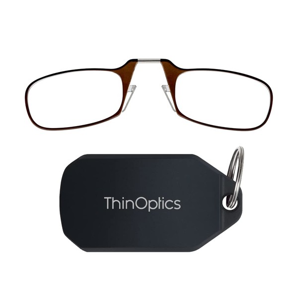 ThinOptics Keychain Readers Rectangular Reading Glasses, Black Case/Brown Frames, 44 mm + 1.5