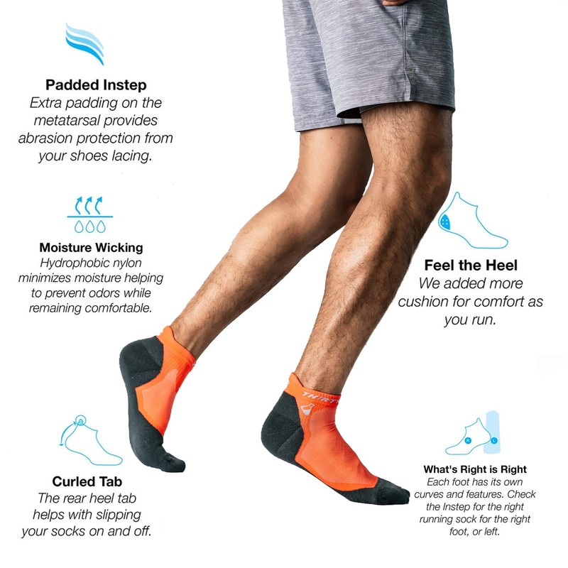 - Heel pull tab for easy On and Off running socks.