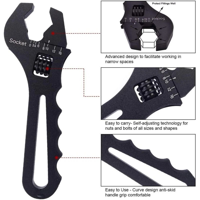 - Wrench Type: Billet Aluminum Adjustable Wrench 3AN-16AN