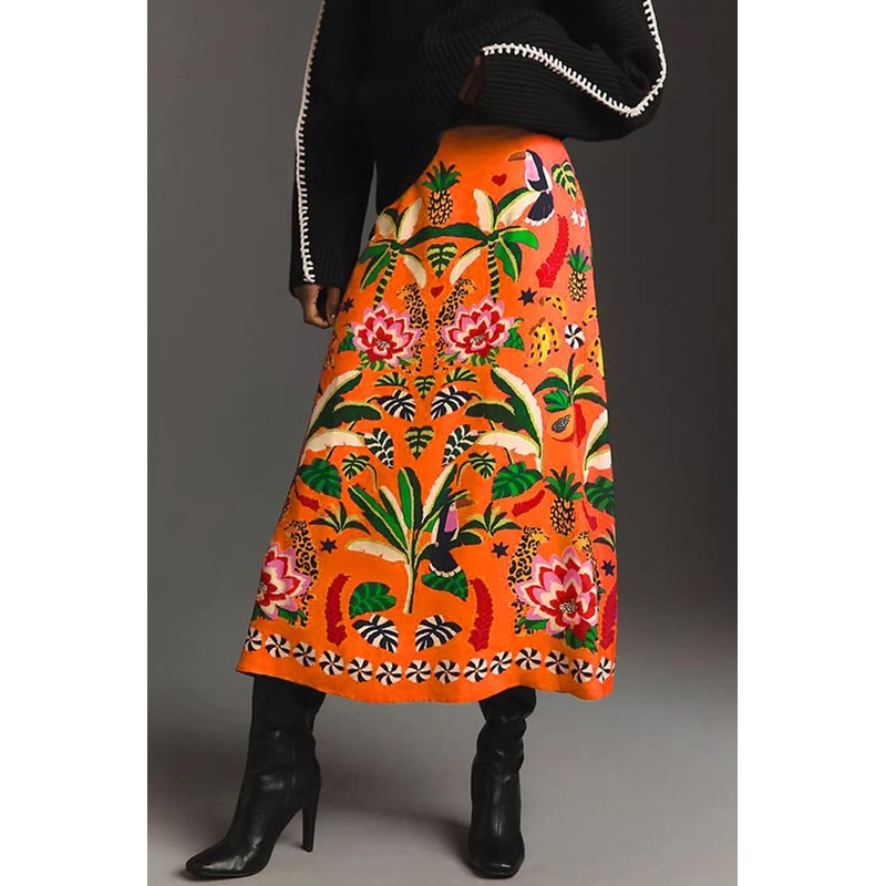 - Features: Women skirt, tropical plant print, Orange pink, high waist, zipper design, midi length skirt. Simple design makes this casual skirt suitable for all women, you will never regret to get one.