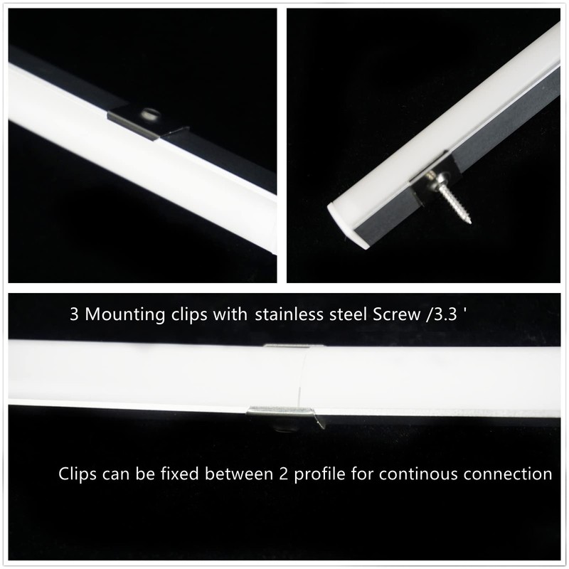 - The Package Included V Shape Channel 3.28FTX10 ,Milky PC Cover X10 ,Mounting Clips X30, Stainless Steel Countersunk ScrewX30 ,End Caps With Hole X10 ,End Cap Without Hole X10,90 Degree Corner ConnectorX2