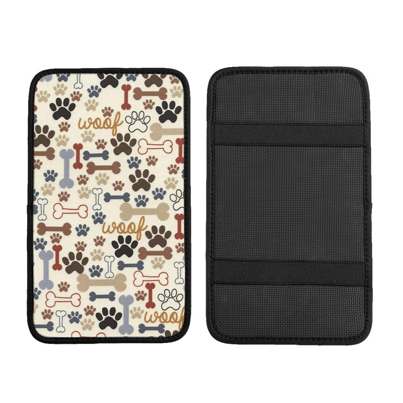 THOEWONG Animal Dog Paw Prints Bones Universal Auto Center Console Armrest Soft Pad Protector Cover Fit for Most Vehicle,SUV,Truck Car Accessories