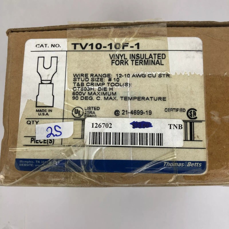 Thomas & Betts 25 x Thomas Betts Vinyl Insulated Fork Terminal 12-10 AWG TV10-10F-1 #10 Stud