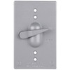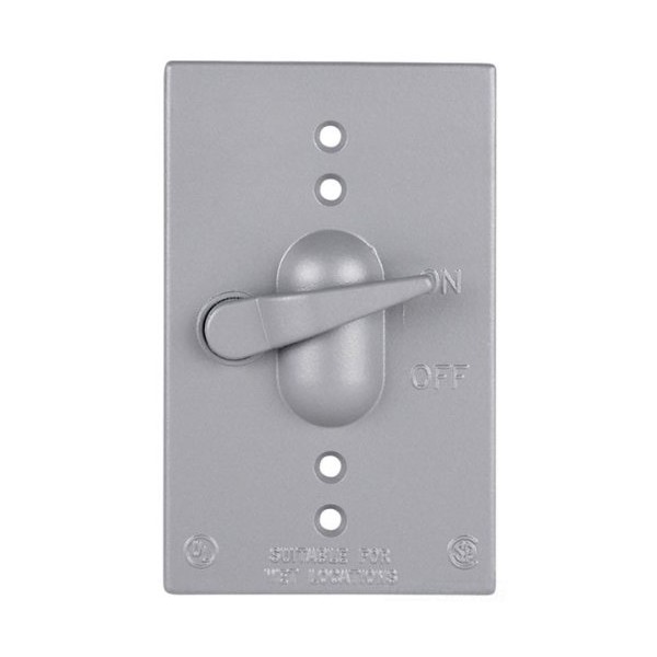 Device Box Cover; 1 Gang; 2-13/16-Inch Width; 4-9/16-Inch Height; Die Cast Aluminum Material; Aluminum Lacquer Finish; Silver Color; Vertical Position; Device Mount; For One Switch; UL Approval; 1 Standard Package.