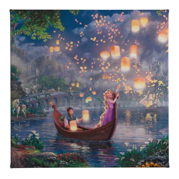 Thomas Kinkade Studios Disney Tangled Gallery Wrapped Canvas - Canvas Art | Disney Princess Canvas Wall Art, Certificate of Authenticity Included, 14" x 14"