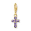 THOMAS SABO Women's Charm Pendant Cross with Purple Stones Gold-Plated 925 Sterling Silver 750 Yellow Gold Plating 2036-414-13, Sterling Silver, Cubic Zirconia