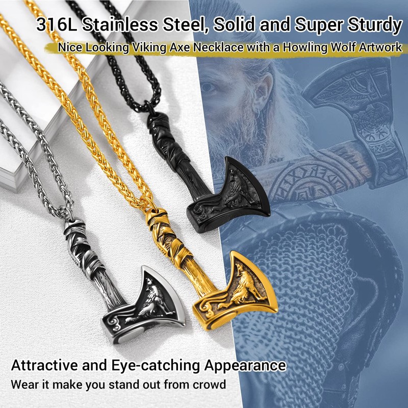 Thor Axe Gold Necklace Pendant Viking Norse Jewelry For Men Punk Talisman Witcher Necklace