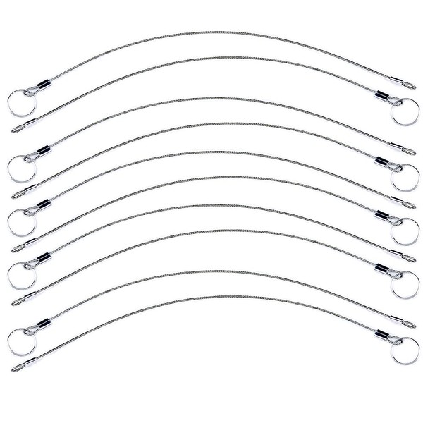 Thorn Loop Wire Rope Lanyard Cable Tether Stainless Steel with Split Rings (12inch Length Silver)