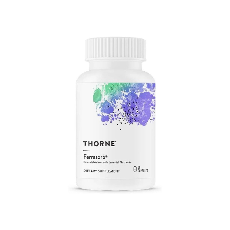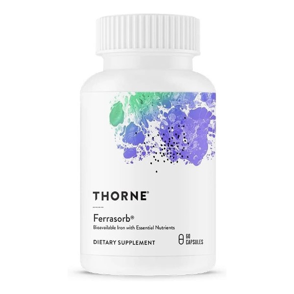 THORNE Ferrasorb 36 mg Iron. Essential Nutrients 60 Capsules exp date 08/2026
