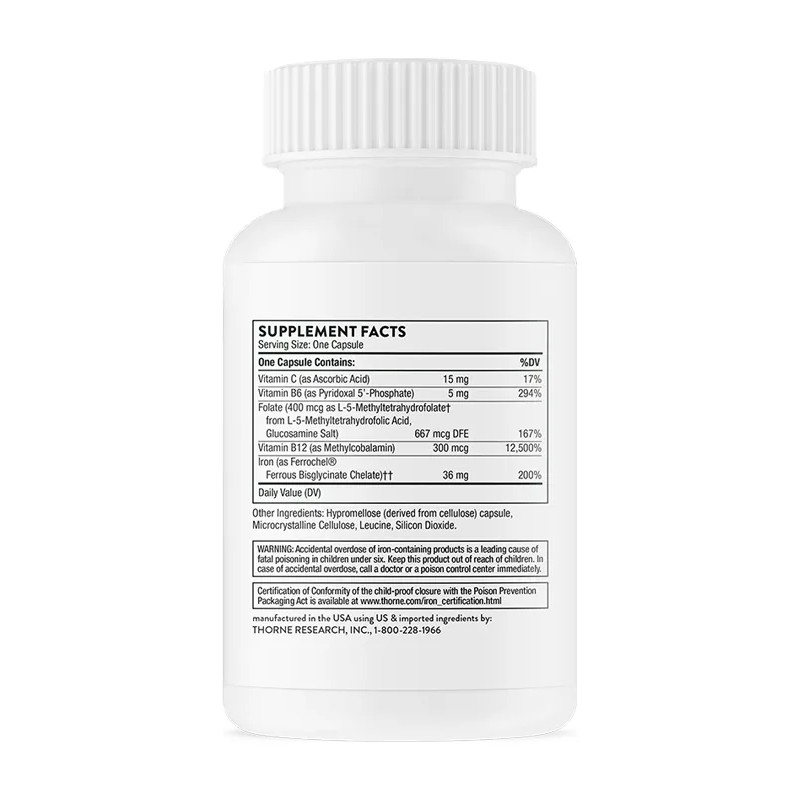 Thorne Ferrasorb (hierro Con Vitaminas B12, C Y Ácido Fólico Sin Sabor