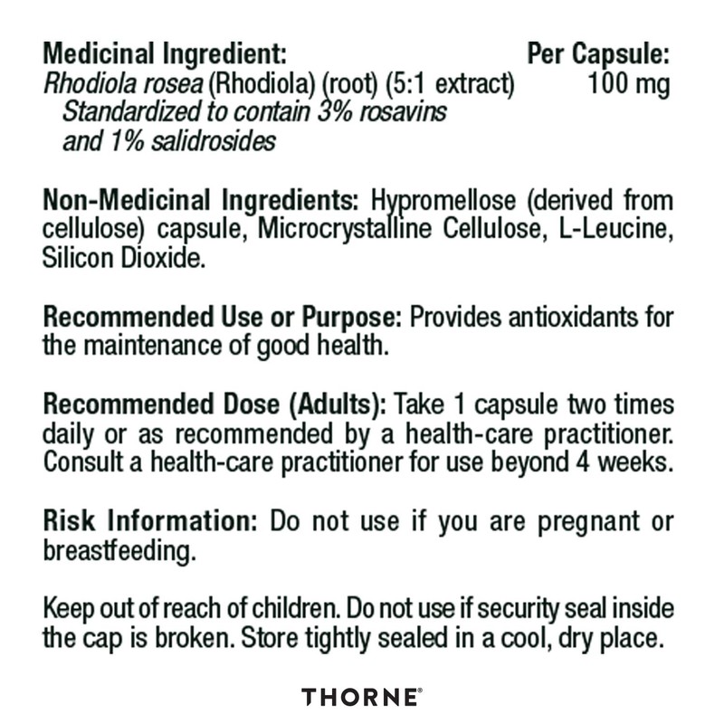 Thorne Rhodiola - Botanical Supplement for Stress Relief - Enhances Positivity, Sleep, and Mental Focus - 60 Capsules - 60 Servings