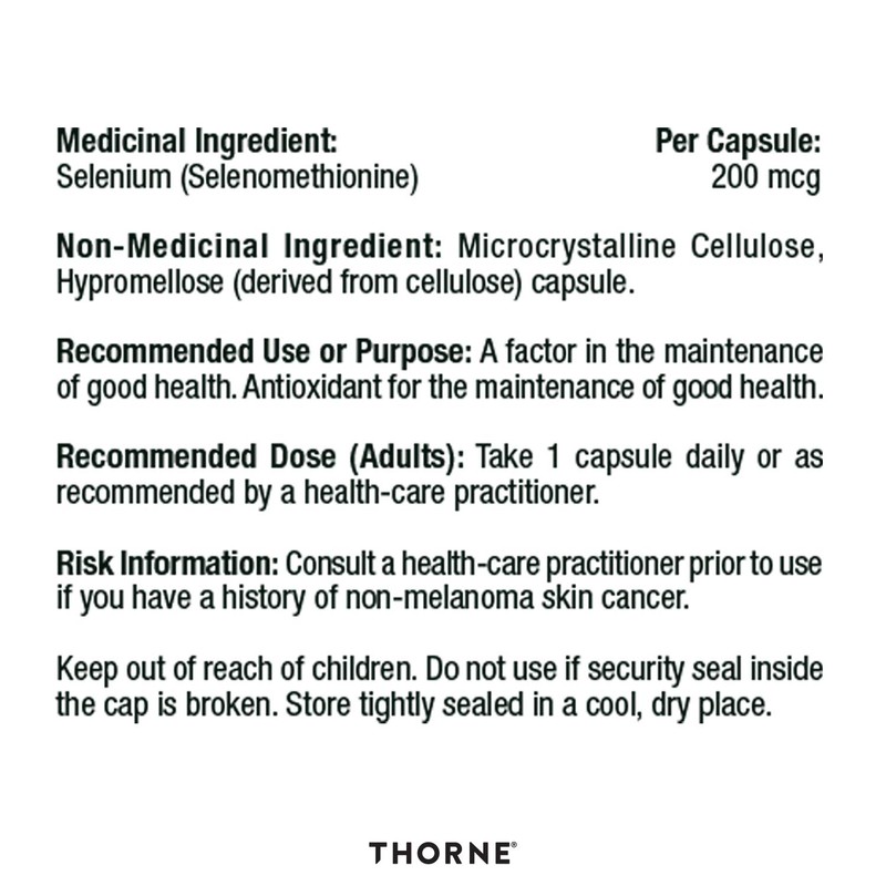 Thorne Selenium (Formerly Selenomethionine) - 200 mcg Selenium Supplement for Antioxidant Support - 60 Capsules - 60 Servings