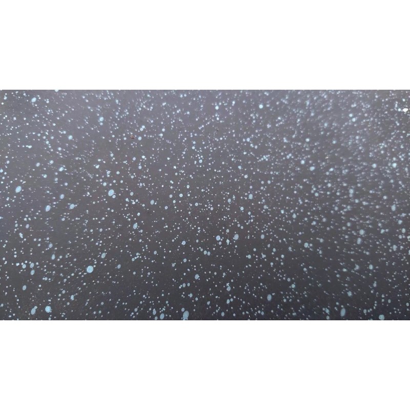 Start by spraying the base color then simply stand back and dust the spatter color over the base color. The spatter is designed to spray out little dots/ speckles. When spraying spatter you should be about 3 feet from the surface and the can should be sprayed out in short, quick burst. Do not hold the nozzle down while spraying like a regular can, push the nozzle and release quickly, moving the can quickly to get a light spatter effect. When spraying spatter less is more.
