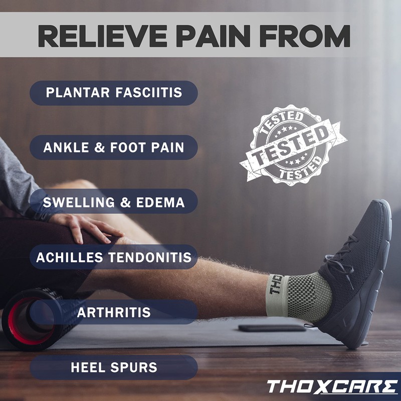 - ☑️【Alivio rápido del dolor】Los calcetines de fascitis plantar THOXCARE ayudan a acelerar el alivio del dolor de la fascitis plantar, tendinitis de Aquiles, artritis, espolones de talón, neuropatía, tobillos hinchados, dolores de arco y mucho más. Estas tobilleras de compresión marcan una gran diferencia en la recuperación de esguinces de tobillo, dolor en las articulaciones, dolor de talón, dolor de arco, hinchazón y edema, definitivamente ayudan a aliviar lesiones deportivas en tus pies.
