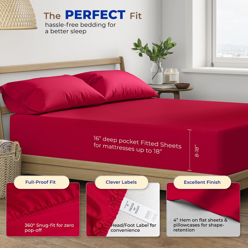 THREAD SPREAD 100% Egyptian Cotton Sheets Twin - 600 Thread Count Sheets Twin, 3 PC Deep Pocket Twin Sheets, Soft, Cooling Sateen Weave Extra Long Twin Sheets for Dorm, 16" Deep Pocket - Red