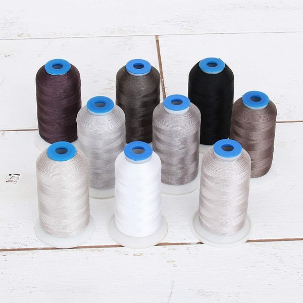 Color:GREY COLOR BUILDER 9 cone Grey Color Builder set of 1000 meter (1100 yards) machine embroidery rayon thread as pictured. A perfect extender set full of a great selection of greys. This style of cone will fit in all major embroidery/sewing. Brother, Pfaff, Babylock, Melco, Bernina, Singer, Husqvarna and More. The thread is 40 weight, the standard for machine embroidery. High- sheen rayon thread is the classic thread choice for sewing beautiful decorative stitches and free motion machine embroidery. Rayon thread is light weight and has the same luster and natural finish as silk thread but it is stronger and less expensive. Color fast with regular washing and dry cleaning. We do not recommend using bleach or other whitening agents with rayon thread.