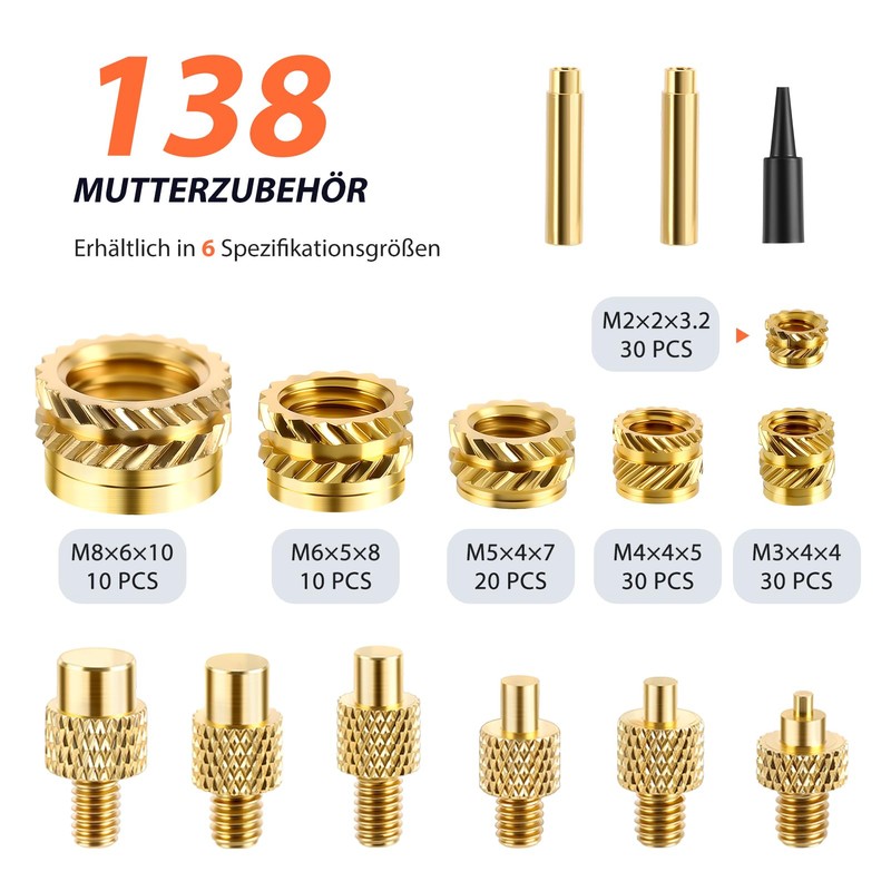 Threaded Inserts Soldering Tips Set, Melting Thread Soldering Iron Set, Soldering Iron Tips for Thread Insert, Melting Nuts M2 M3 M4 M5 M6 M8 Compatible with 3D Printer Accessories
