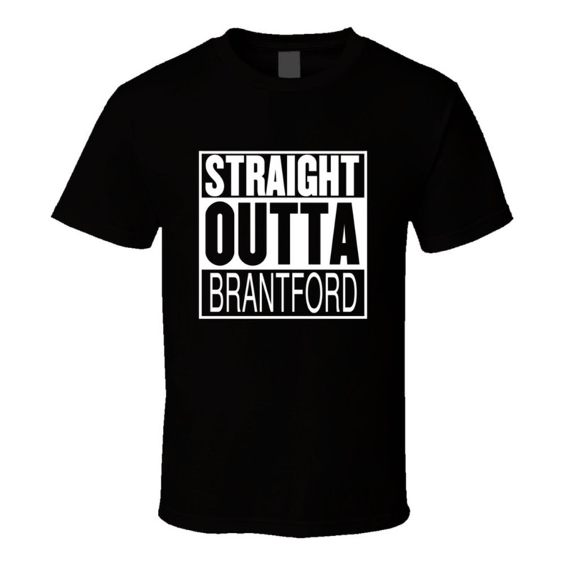 Threadsquad Straight Outta Brantford Ontario Parody Movie T Shirt My Black