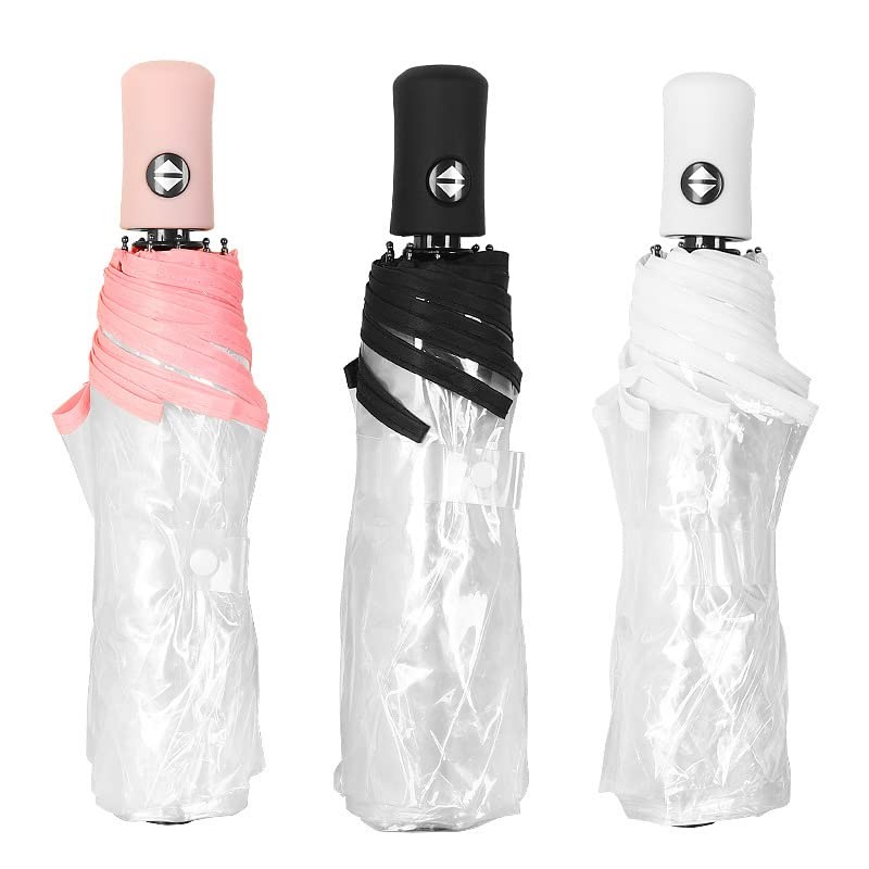 ThreeH Automatisch öffnen und schließen Klarer Regenschirm Bubble Leichter tragbarer Mini-Regenschirm Faltbarer Hochzeitsregenschirm für Auto-Rucksack,Weiß